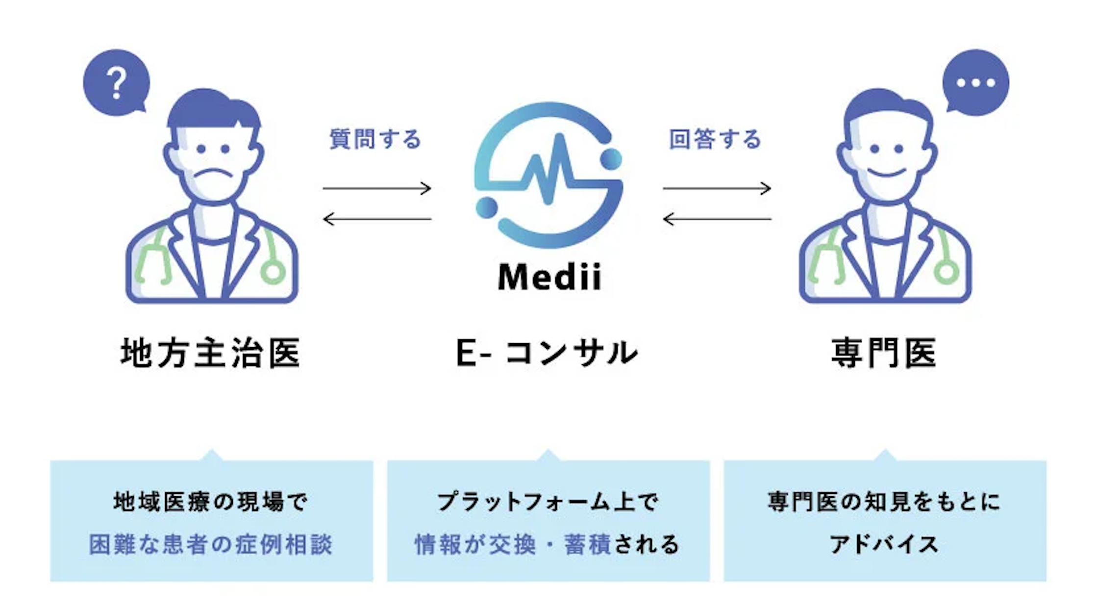 Mediiは「専門医偏在問題の解決を目指す」ことをMissionとして、医師専用オンライン専門医相談サービスを運営するスタートアップ企業です。代表の山田は現役のリウマチ膠原病専門医であると同時に自身も免疫難病患者でもあり、医師と患者の双方向の視点で医療構造を仕組みから変えるためにMediiを創業しました。医師が少ないどんな地域に住んでいてもより良い医療を全ての人が受けられる世界を実現するため、多くの専門医の先生のご協力ご支援の元、特に課題の大きな希少難病を中心とした専門医知見をオンラインで拡げる事業を展開しています。