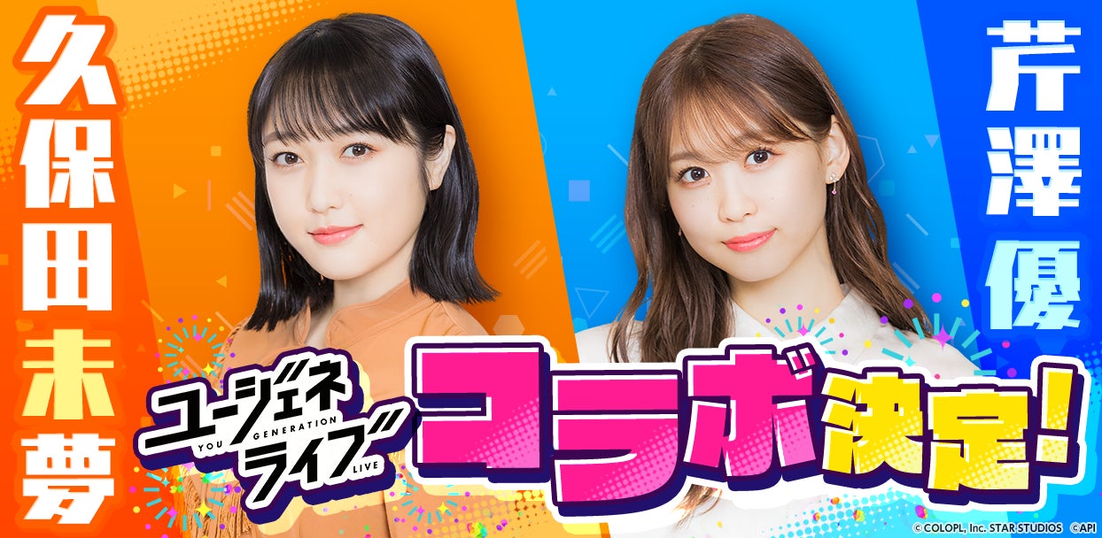 この度『ユージェネライブ』にて、大人気声優の久保田未夢さん、芹澤優さんとの豪華声優コラボが決定しました。それぞれ『ユージェネライブ』ならではの3Dモデルになって登場いたします。コラボの詳細は順次公開しますので、アプリ内のお知らせや「ユージェネライブ公式Twitter」、久保田未夢さん、芹澤優さんのTwitterをご覧ください。