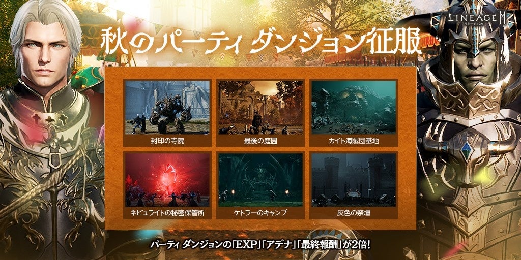 期間中、すべてのパーティ ダンジョンでの獲得EXPやアデナが2倍になります。
