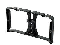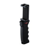 カメラやライト、マイクなどの撮影機材をカスタマイズして装着できる、動画撮影用スマートフォンホルダーです。両手でしっかりと持てるので安定性が高く、動きながらの撮影に最適です。ホルダー上部には、撮影に必要な機器が複数取り付けられるように、センターにアクセサリーシュー、左右に1/4インチネジ穴(計2カ所)を装備しています。