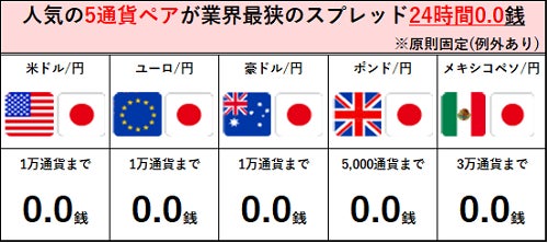 主要通貨だけでなく非常に少額の資金で取引できることから投資家の人気を集めている「メキシコペソ/円」もキャンペーンの対象に含まれるため、より多くのお客様にご満足いただけるキャンペーンとなっております。