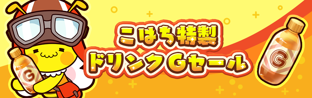 本日6月6日(月)より、ハニプレ内の交換所にて『こはち特製ドリンクGセール』を開催いたします。ゲリラライブへゲスト参加する際に必要な「ゲリラパス」が不足したら「こはち特製ドリンクG」を手に入れて消費した「ゲリラパス」を回復させましょう!