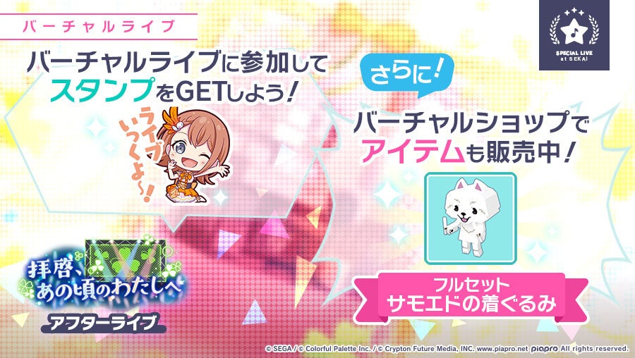 イベント終了後には「バーチャルライブ」でのアフターライブとして、「拝啓、あの頃のわたしへ アフターライブ」を開催いたします。