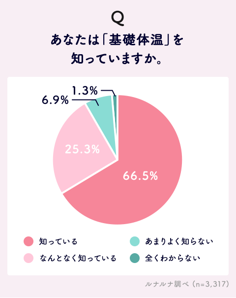 まずは、基礎体温自体の認知度をみました。基礎体温とは、生命維持に必要な最小限のエネルギーしか消費していない安静状態にあるときの体温です。つまり寝ている間の体温のことですが、睡眠中に自分で測ることはできないため、朝目覚めて活動する前に測るのが一般的です。
