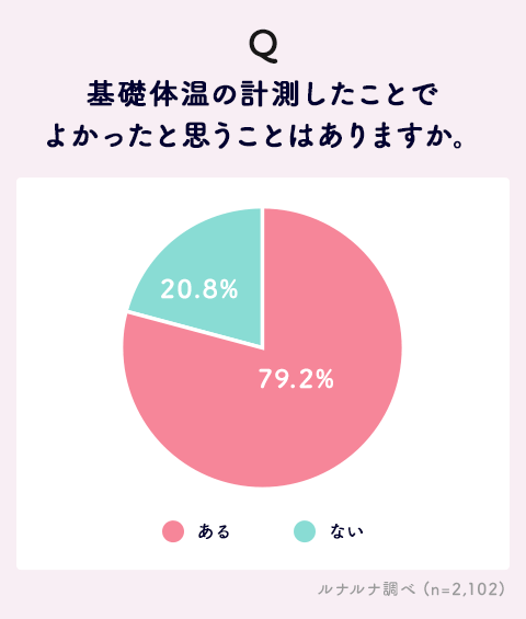 このように計測を断念してしまう人も少なくない基礎体温計ですが、計測したことでよかったと思うことはあるかと聞くと、「ある」79.2%と、約8割の人が基礎体温計測にポジティブな面を感じている結果になりました。