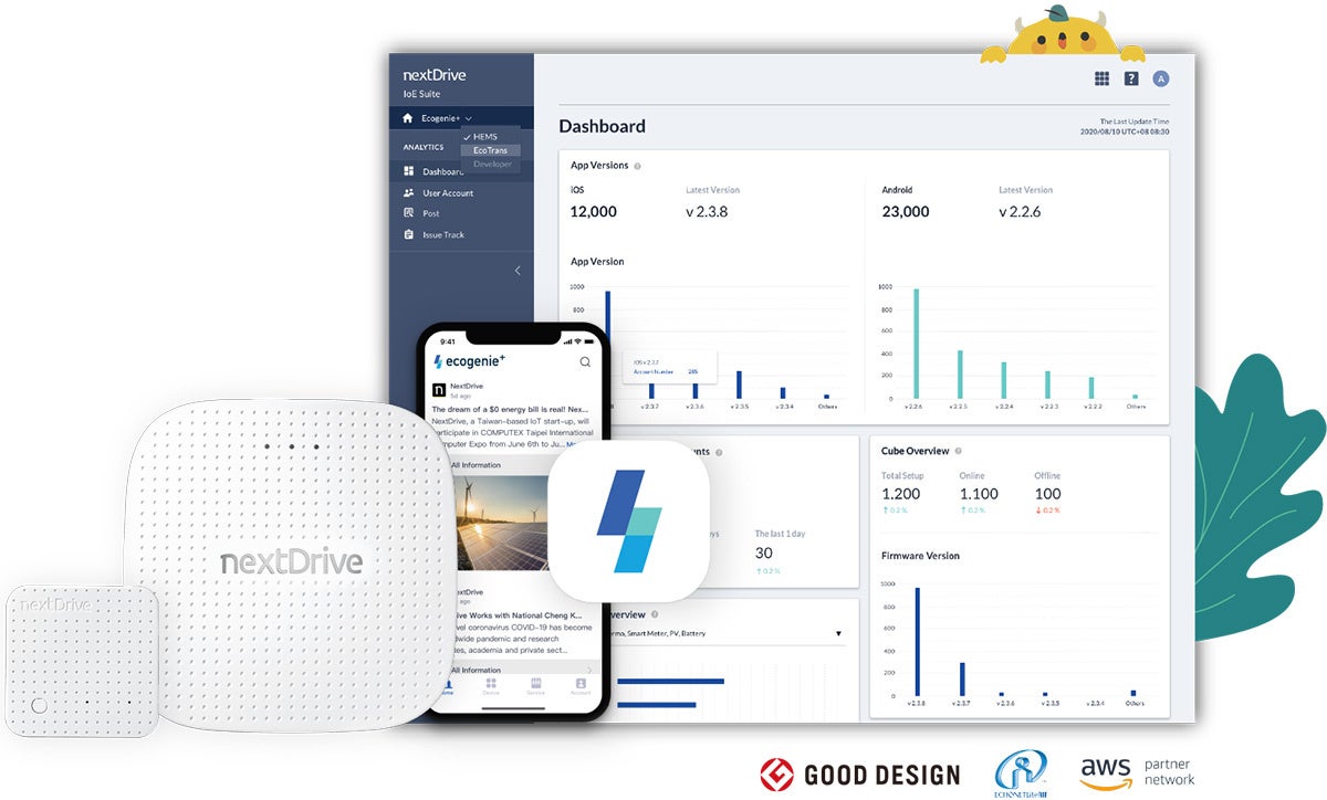 IoE(Internet of Energy:エネルギーとインターネットの融合)、IoT、HEMSを活用したエネルギー管理とクラウドサービスを開発・提供する、エネルギーデータ プラットフォーム企業です。IoTとソフトウェア・ハードウェア技術を統合し、電力会社をはじめとするエネルギー関連企業にワンストップでエネルギーデータ プラットフォームサービスを提供しています。