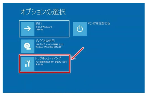 Step2:再起動後に表示される画面から「トラブルシューティング」を選択します。