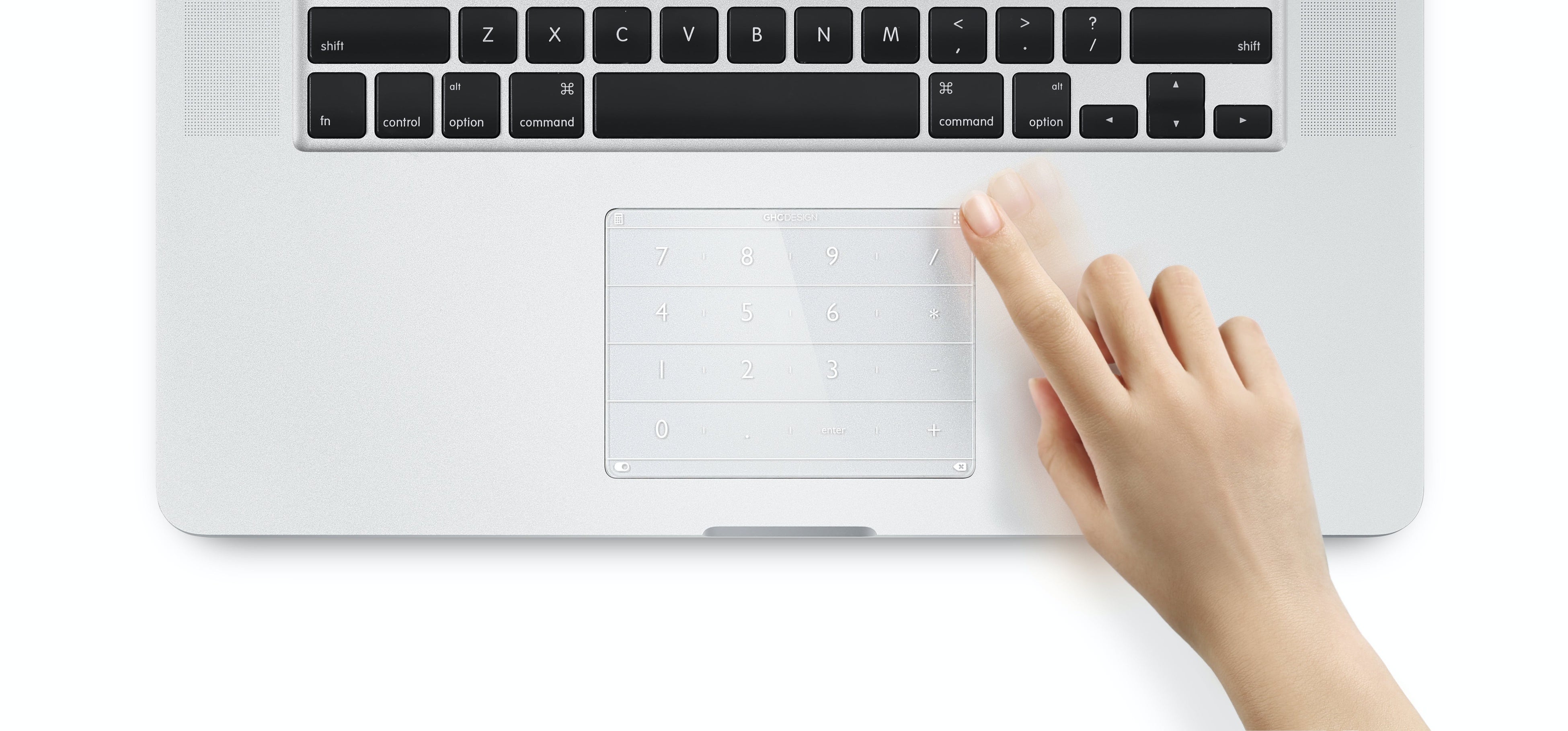 Numsは、使用しているPCのトラックパッドに貼りつけ、セットアップをするだけで、テンキー入力モードによる数値入力、アプリやソフトをスムーズに立ち上げられるランチャ―モードなどの機能が使えます。