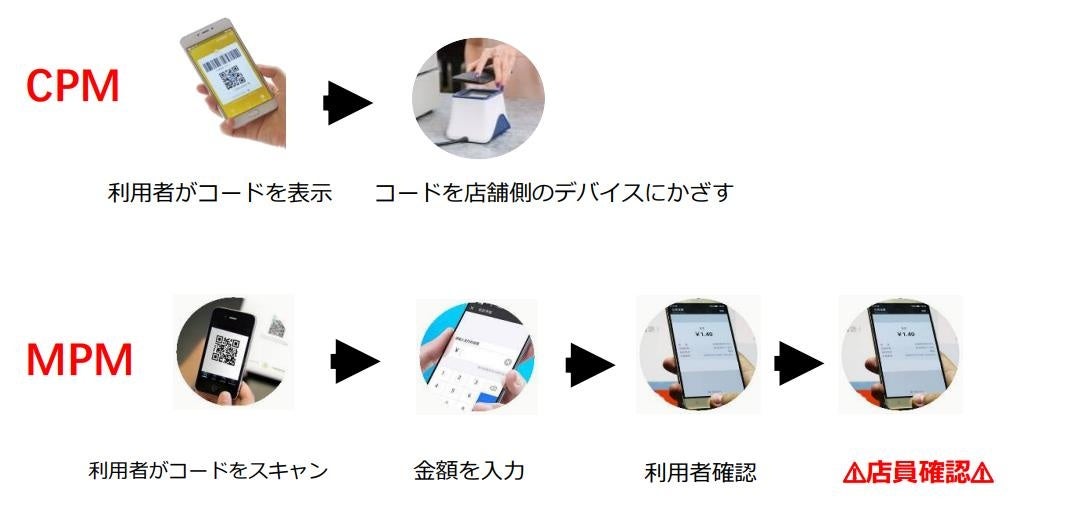 従来はMPM(ユーザーがスマートフォンを使って店舗側の二次元コードを読み込んで決済する方法)が主流でしたが、「SmartBox」があればCPM(ユーザー側の二次元コードを読み込むことで決済ができる)のため、双方の負担が大幅に削減され、従来の方法と比較すると、約12秒※も短縮することができます。