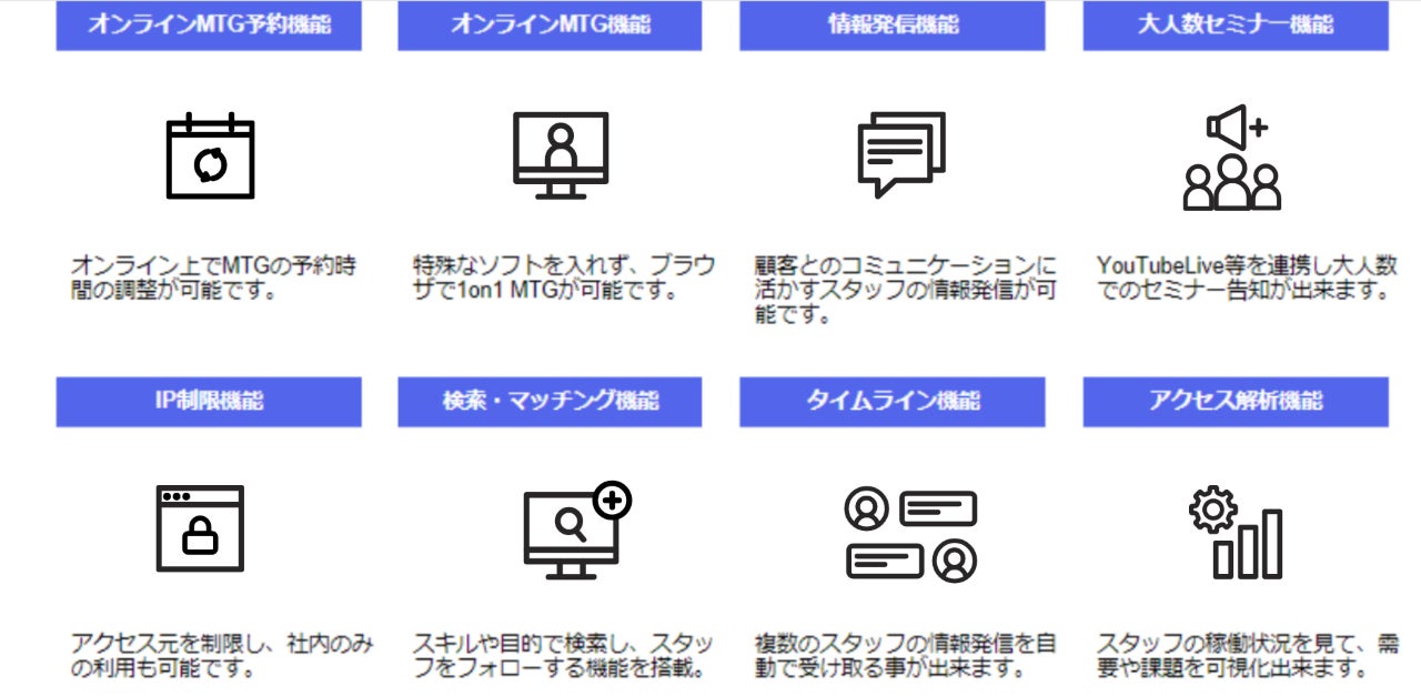 サービス内に担当コンサルタントをスタッフとして配備すれば、マイクロコンサルティングプラットフォームとしても利用可能です。