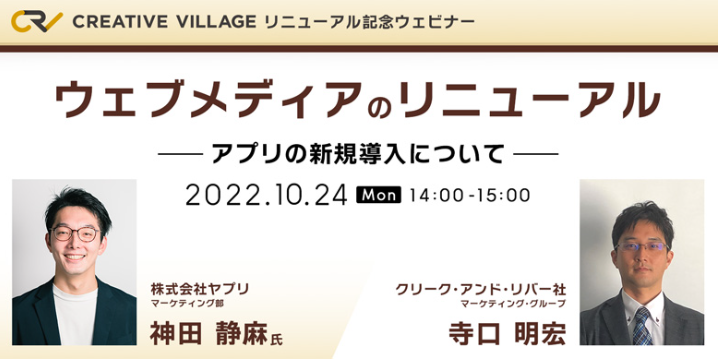 - 【CREATIVE VILLAGEリニューアル記念ウェビナー】Webメディアのリニューアル ~アプリの新規導入について~