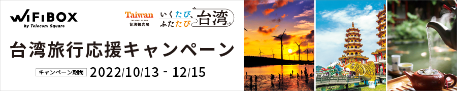 台湾では9月29日よりビザの申請なく入国できるようになりました(渡航目的事業を主管する中央当局の許可を事前に取得する必要がある活動を行う場合を除く)。さらに本日10月13日からは、入国時に義務付けられていた指定ホテルでの3日間の隔離が撤廃となり、入境総人数を週15万人へ引き上げたことから、本格的な観光再開に向けての水際対策緩和が進んでいます。WiFiBOXも4月1日のサービス開始以来、台湾でのご利用においてご好評いただいていることも踏まえ、この度台湾旅行応援キャンペーンを開始いたします。