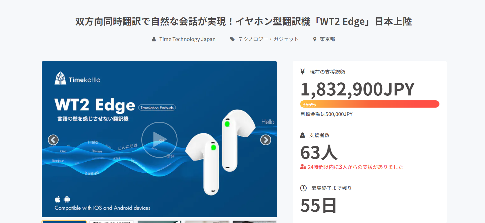 【7月31日(日) 23時終了 】最新翻訳機『「WT2 Edge」』が応援購入CAMPFIRE (キャンプファイヤー)サイトにて最大40%OFFの数量限定販売を実施中。