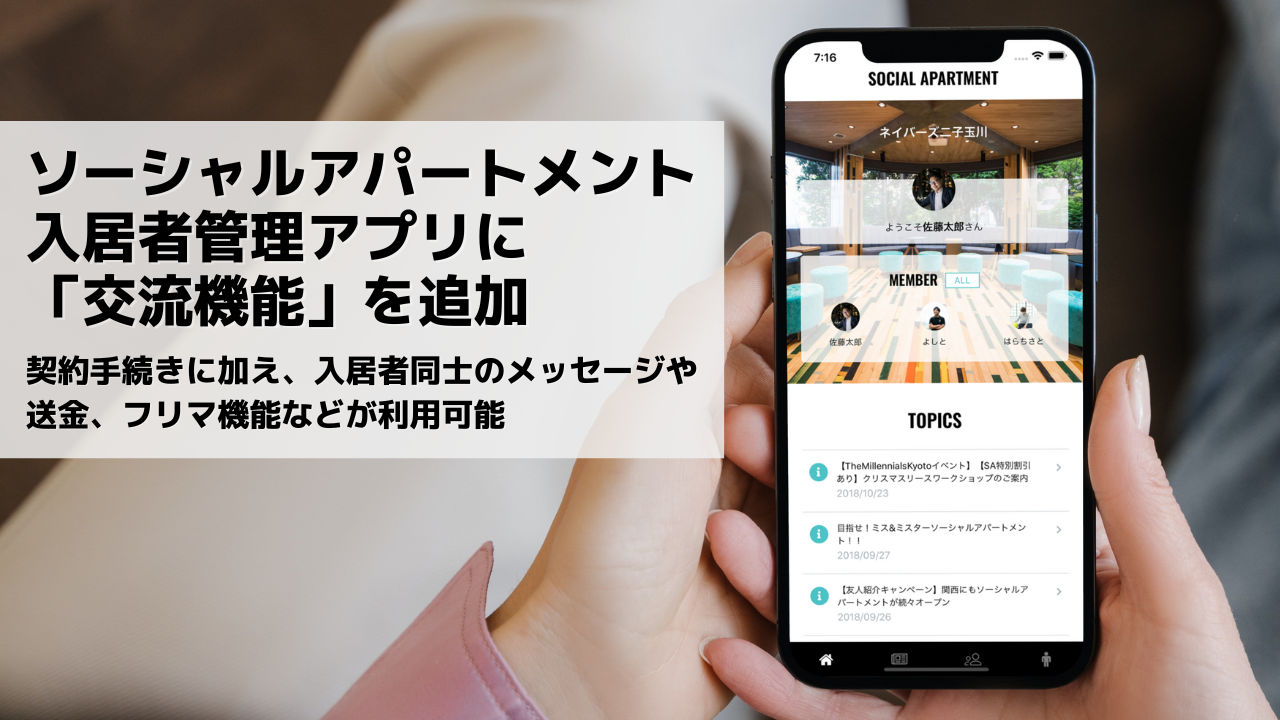 ソーシャルアパートメントの特徴でもある入居者同士の交流を、アプリ内でも促進させることができるような仕組みを取り入れました。