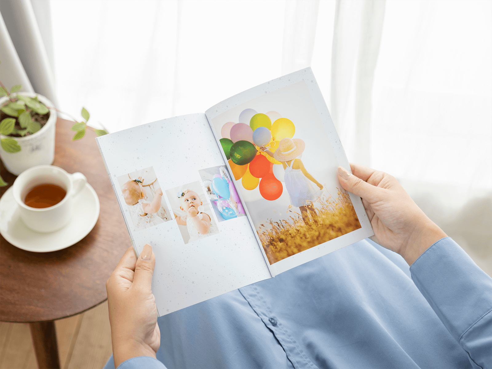 まるで絵本のような仕上がり。長期間の保存にもぴったりなボードブック。ページをフラットに開くことができるレイフラット製本。写真を見開きに設定することで、全面写真をより魅力的にまとめることができます。