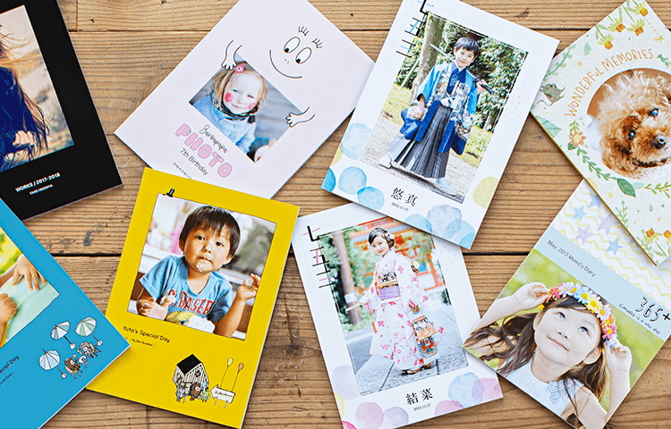 スタンダードで豊富なデザインテンプレートが基本のフォトブック。気軽に作れるパンフレット風「マガジンタイプ(中綴じ)」と本格派製本「ブックタイプ(無線綴じ)」の2種類からお選びいただけます。