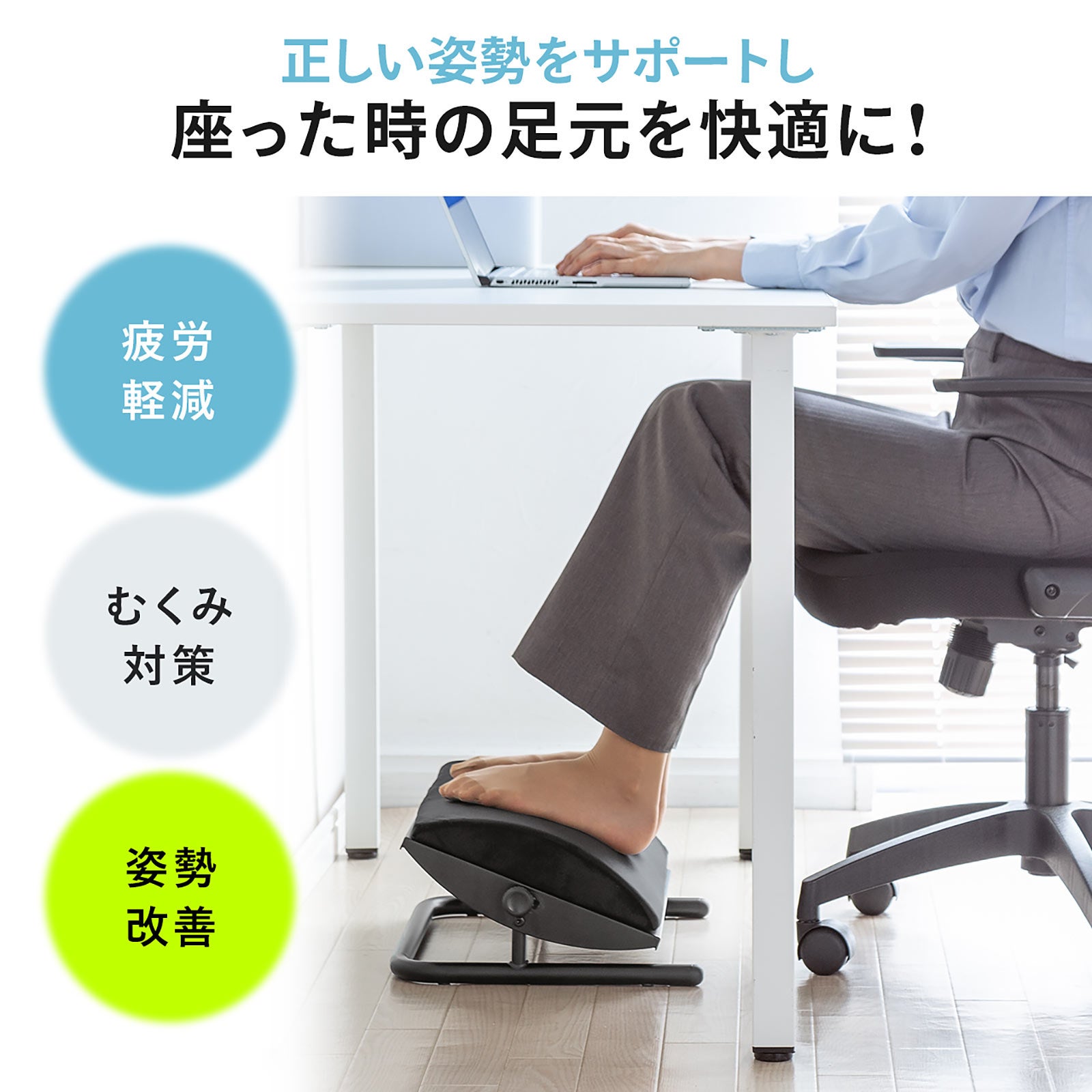 本製品は、デスクワークによる足の疲れやむくみを軽減するフットレストです。