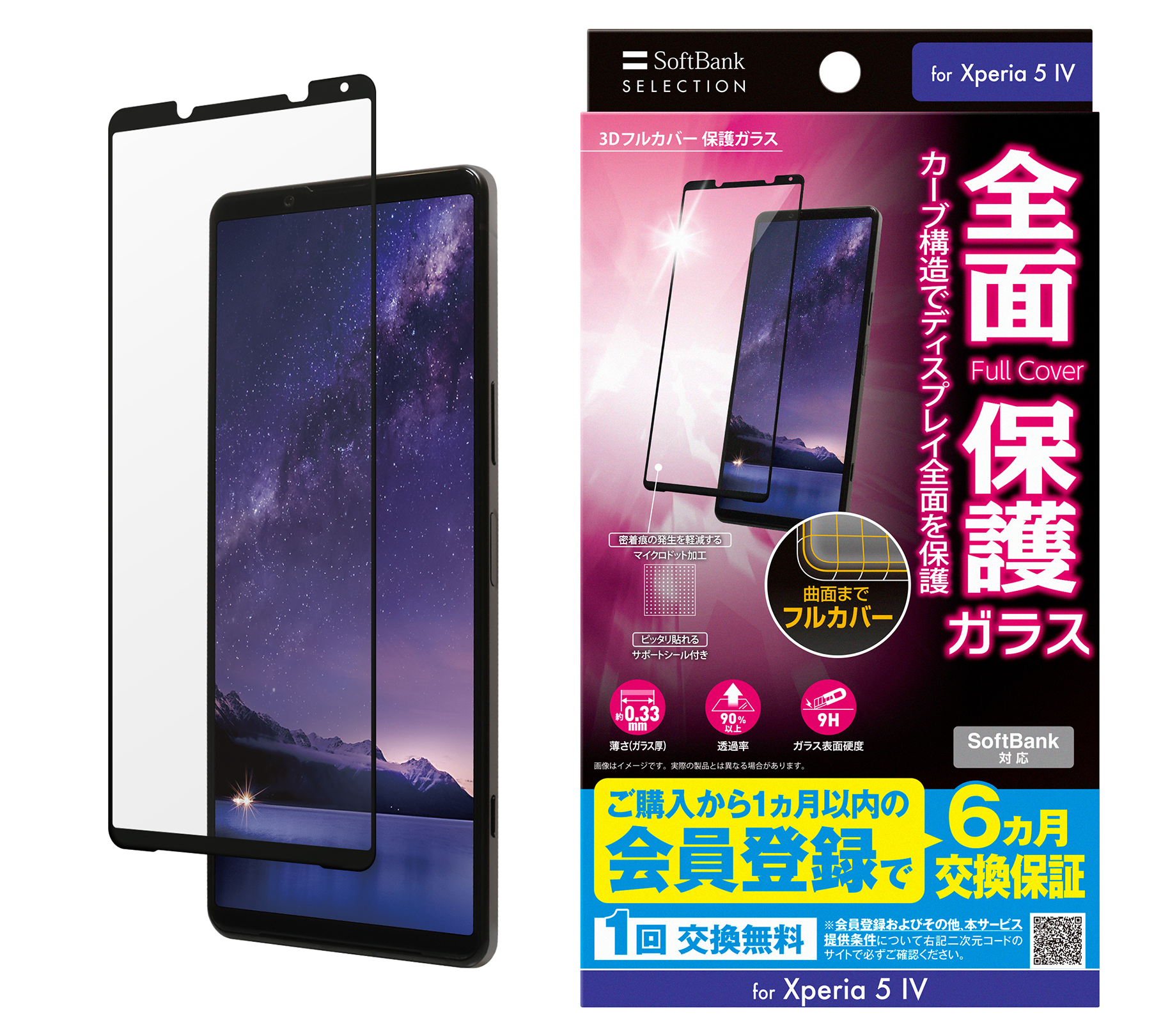 3Dカーブ構造でディスプレイ全面を保護。ガラス面は、薄さ約0.33mm表面硬度9Hの日本製高硬度強化ガラスを採用。飛散防止加工により高い安全性がありながらも、操作感が良く、指紋や汚れが落ちやすい保護ガラスに仕上げています。また、透過率90%以上と透明度が高く、ディスプレイの画像を美しく映し出します。