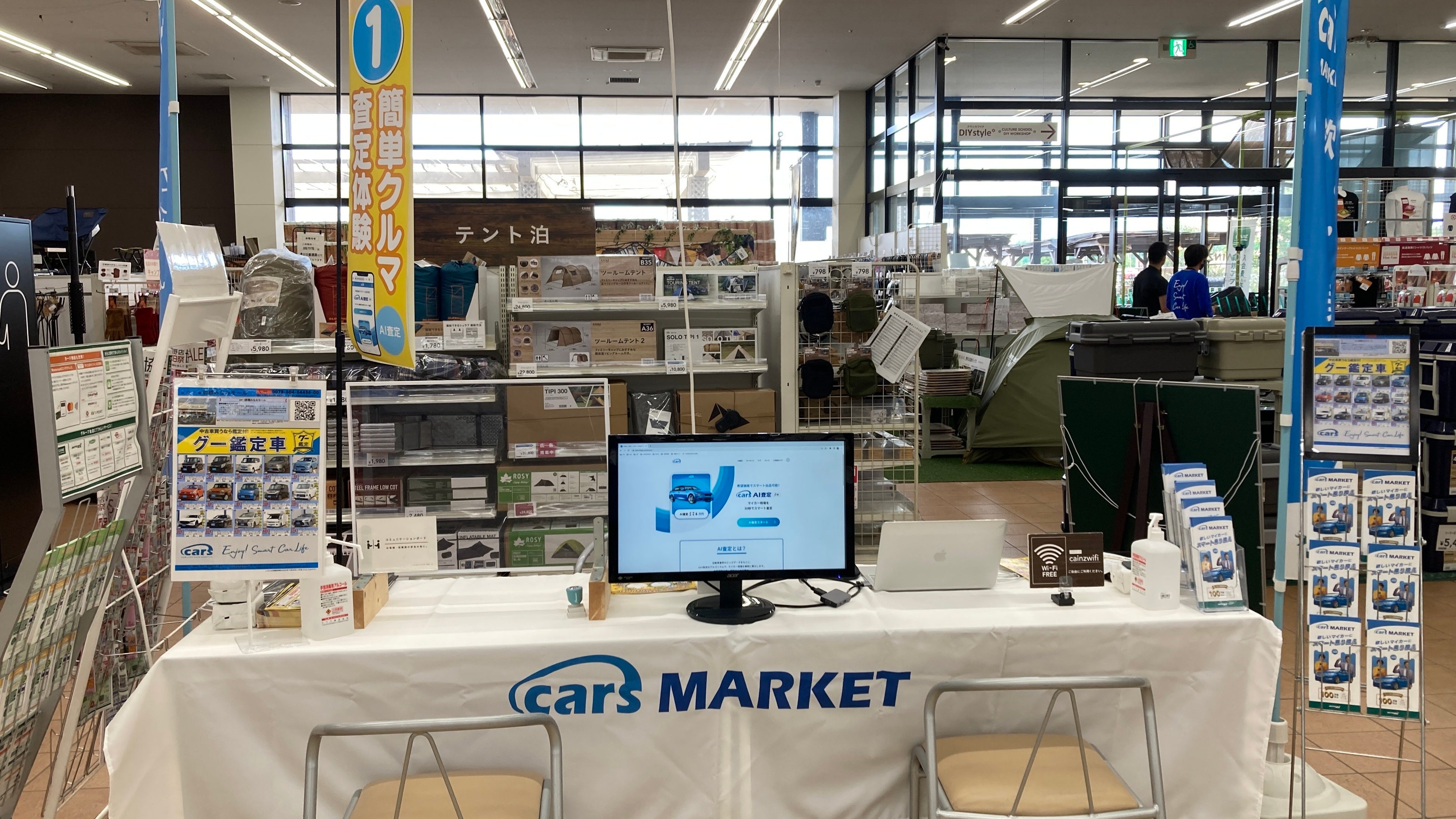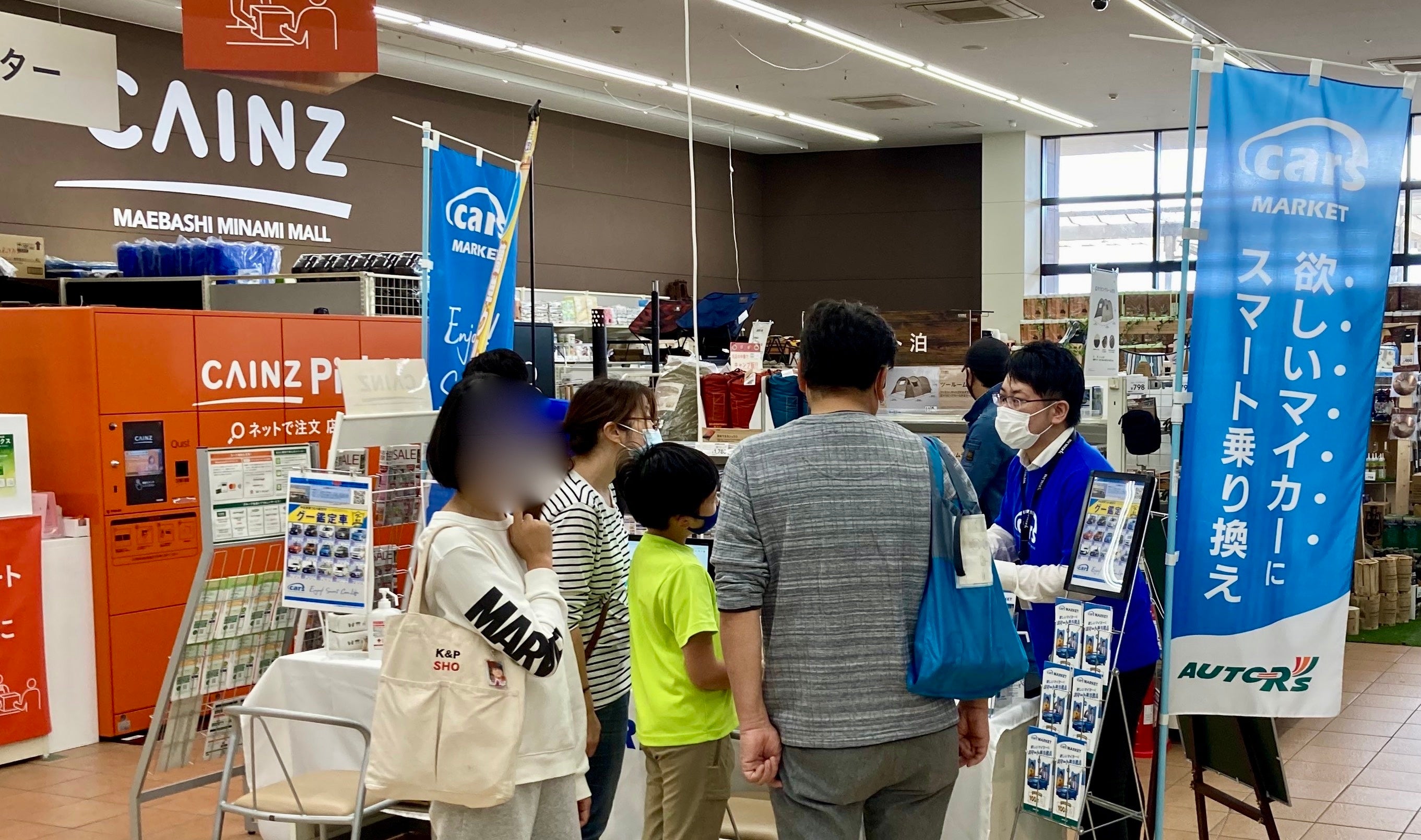当社はパワーモール前橋みなみのテナントストアのなかでもとりわけ高い集客力を誇るカインズ前橋みなみモールにブース出展いたしました。買い物客でにぎわう店舗内で販促をおこなったところ、ご興味をもって立ち寄る来場者も多くいらっしゃいました。また車社会という地域特性からファミリー利用も多く、マイカーでの来場者がほとんどを占めるため、車の買い替え需要も顕著。具体的な買取にかんするご要望が多かったのが印象的でした。