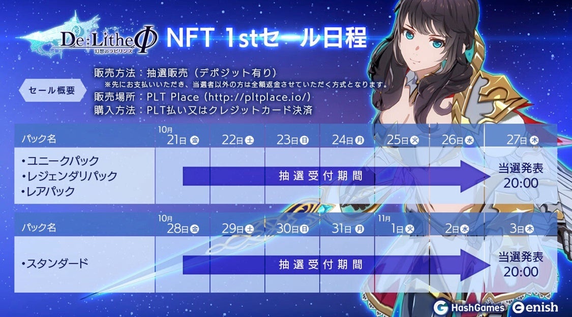 第1回セールはHashPalette公式NFTマーケットプレイス「PLT Place」において、下記の日程にて抽選方式で実施いたします。