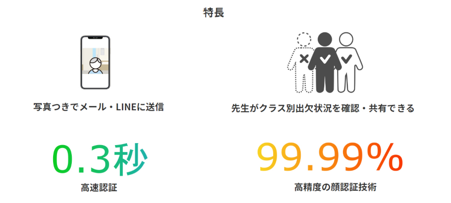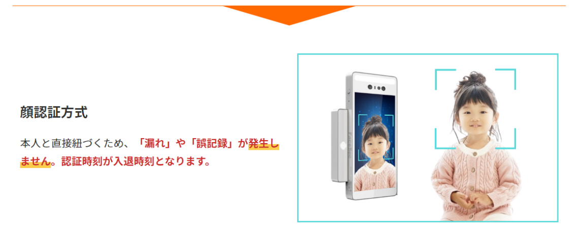 従来の記録方式として、①ノートに記帳、②専用システムの画面に手入力、③メンバーカードの読み取り、④生徒のスマホを使用などがありますが、いずれも本人と紐づいていないためヒューマンエラーが避けられません。特に手入力の場合は作業自体が負担になるうえ正確な時刻の記録が担保されません。個人認証を顔でおこなえばこの問題は解決します。