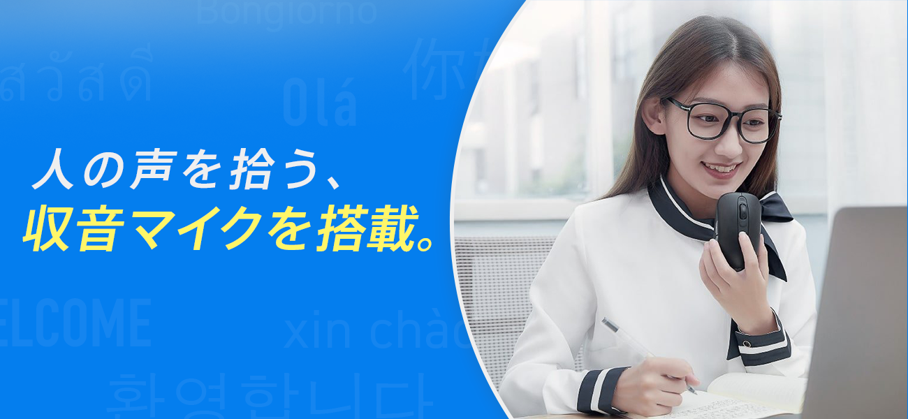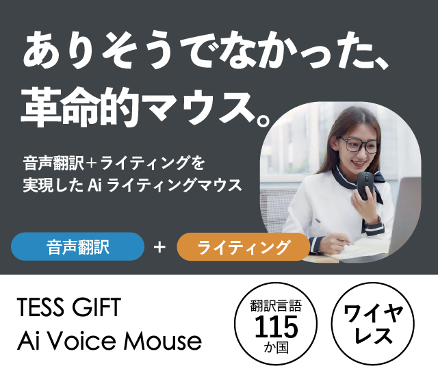 『AIライティングマウス』は、自動文字起こしと自動翻訳機能を兼ね備えたワイヤレスマウスです。