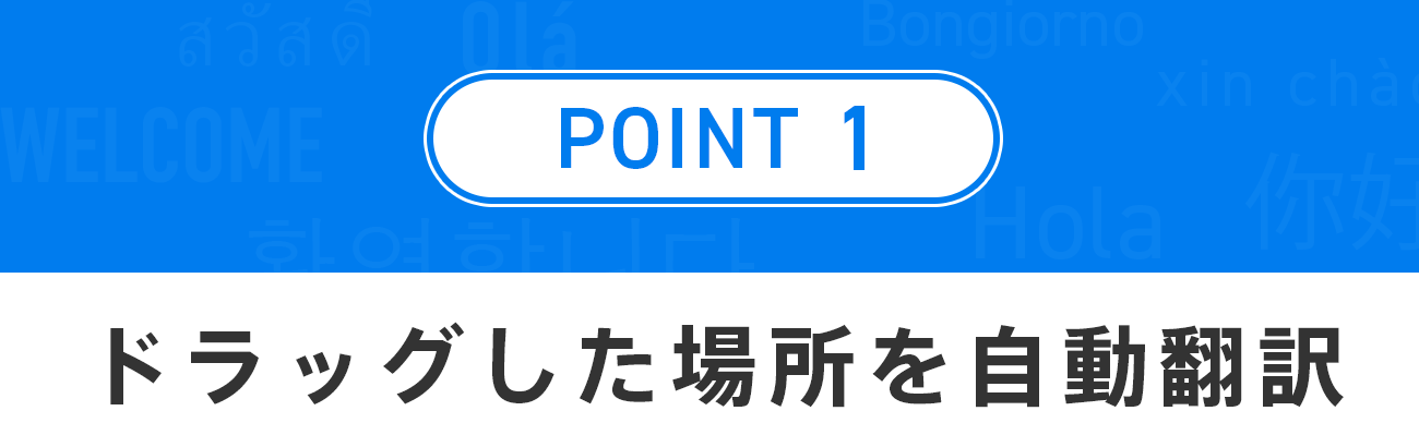 カーソルでドラッグした場所を、ワンクリックで自動翻訳できます。