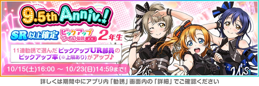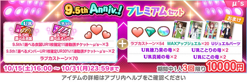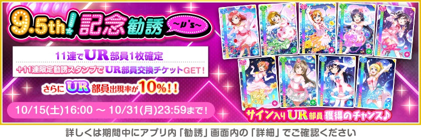 スクフェス9.5周年を記念して、10/15 16:00以降にログインしていただいた全ての皆さまに控え室の部員枠100人分をプレゼントいたします!