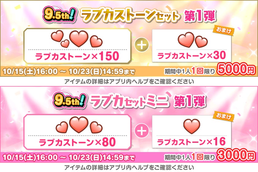 スクフェス9.5th Anniversaryログインボーナス 第1弾