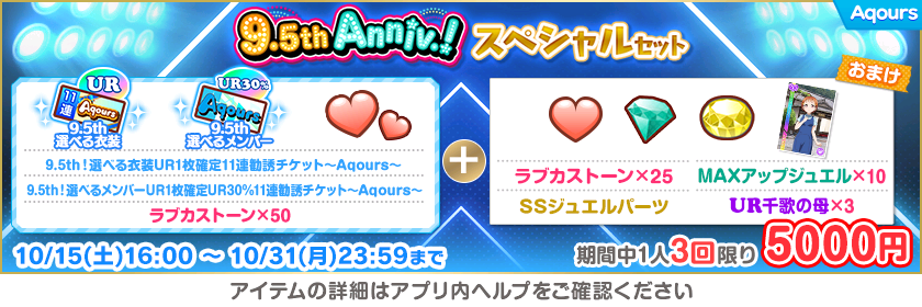 スクフェス9.5th Anniversaryログインボーナス 第1弾