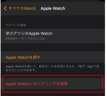 3.Apple Watchのペアリングを解除する