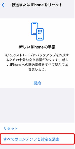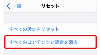 Step3:「すべてのコンテンツと設定を消去」を選択。