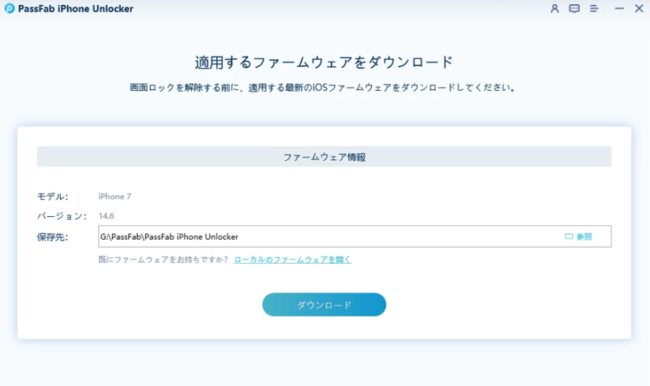 Step3:続いて以下の画面のようにファームウエアのダウンロード画面が表示されますので、ここで「ダウンロード」をクリックし進んでください。なお、ダウンロードには最低7Gのスペースがパソコンに必要です。