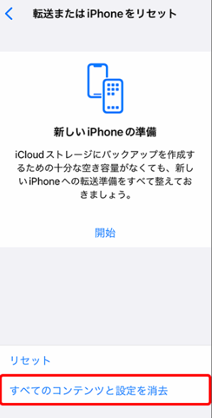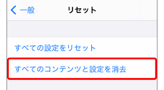 Step3:「すべてのコンテンツと設定を消去」を選択。
