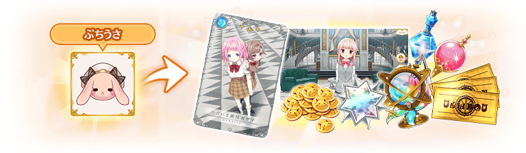 本イベントで獲得した「ぷちうさ」は限定メモリア「ただいま敵情視察中」や限定ホーム背景「恋は△ 愛は●」等、貴重なアイテムと交換できます。