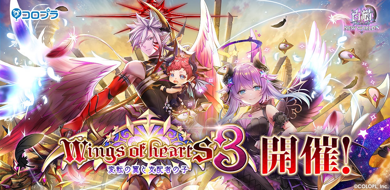 2022年10月14日(金)より新イベント「Wings of hearts 3 ~変転の翼と支配者の子~」を開催いたしました。新イベント「Wings of hearts 3 ~変転の翼と支配者の子~」は、悪魔の国にあるサタニアス地方を舞台に、守護天使のルカ(CV:茜屋日海夏)と、元悪魔殺しの悪魔レイン(CV:木村良平)が活躍する人気シリーズ「Wings of hearts」の最新イベントです。