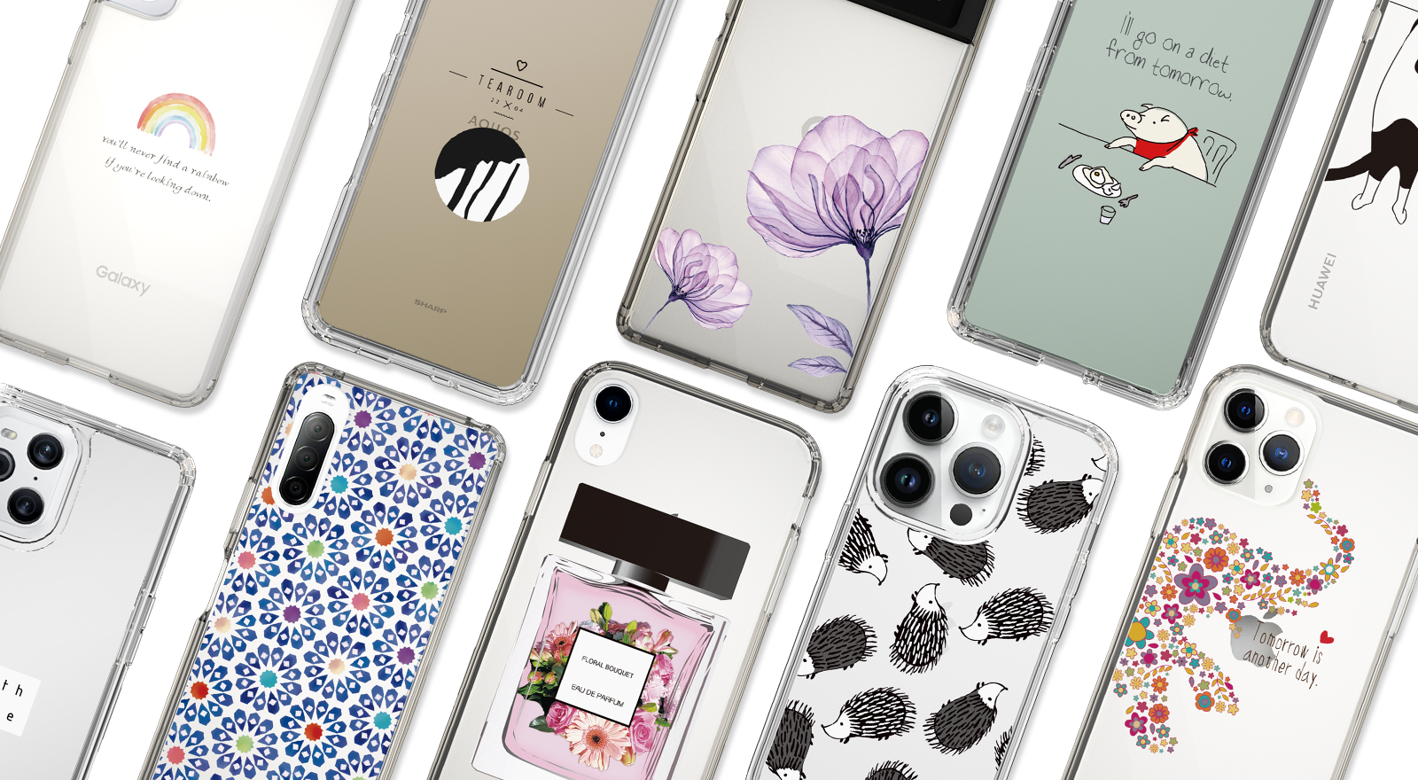 今回のラインナップには、花柄やコスメなどのモチーフを使用した女性らしいデザインを豊富に取り揃えています。