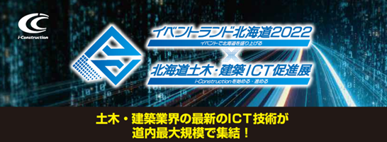 「イベントランド北海道2022 / 土木・建築ICT促進展」は、土木・建築業界の最新のICT技術が北海道内最大規模で終結する展示会です。i-Constructionの推進を目的とした建設機械等の展示のほか、専門セミナーの開催、VR・ドローンの実演体験なども行われます。