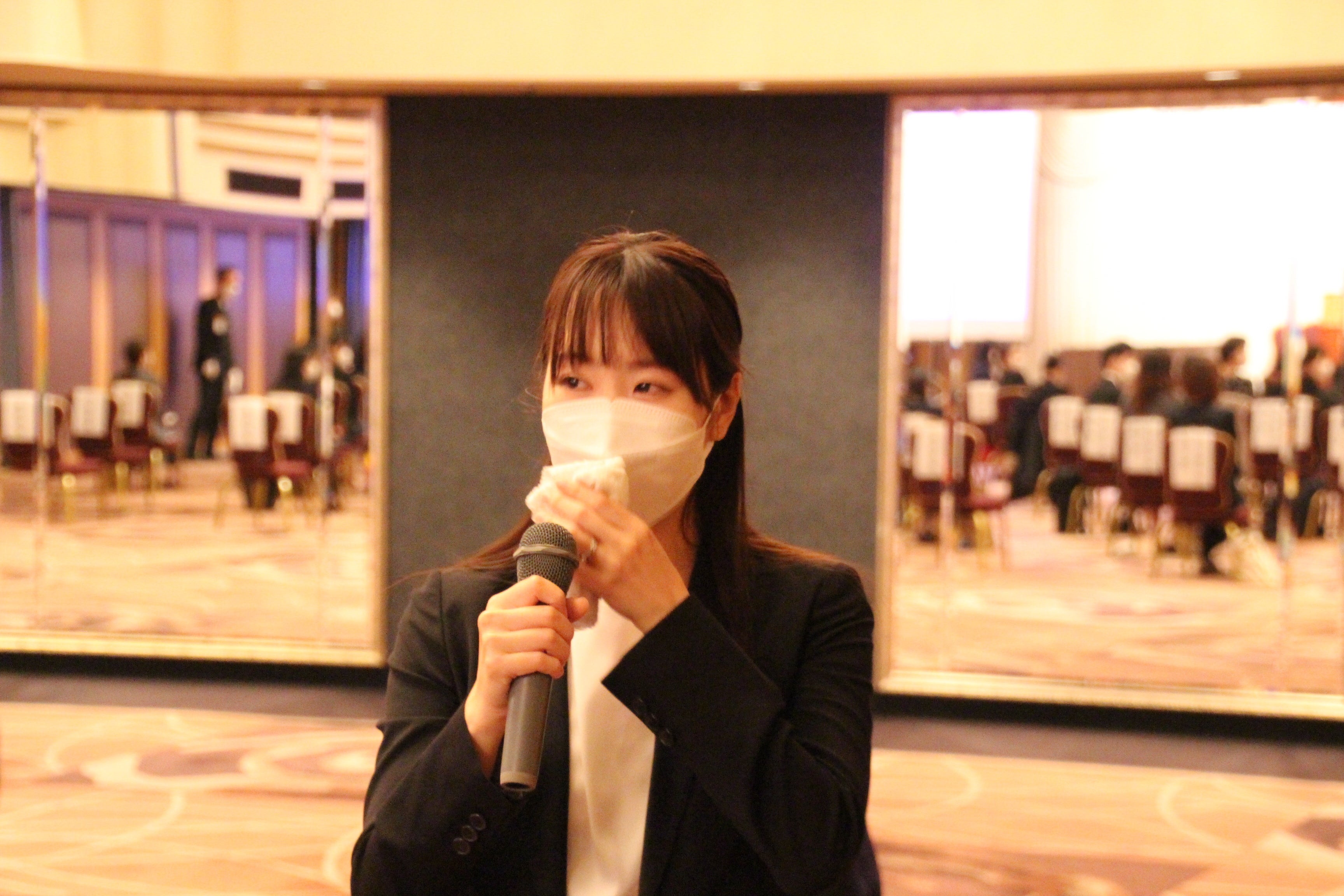 「(嬉し泣きしながら)・・・優勝することができて、本当に光栄です。ここまで来られたのは会社の皆様に応援・後押ししてもらったお陰だと思っています。その皆様にしっかりと恩を返せるよう、全国大会でも頑張りたいです。」