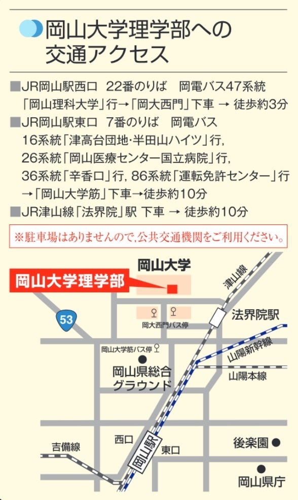 〒700-8530 岡山県岡山市北区津島中3-1-1 岡山大学津島キャンパス