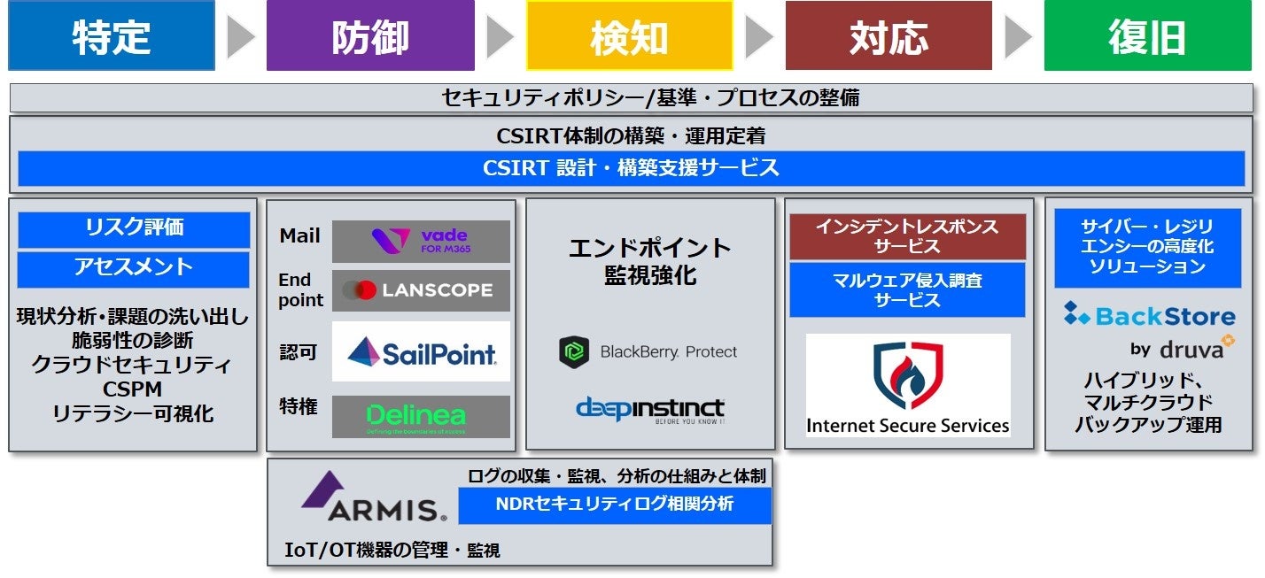 アイ・アイ・エムは、今回の事業提携により、従来から提供している「防御」「検知」の領域に加え、インシデント対応の領域を強化し、さらに同じセイコーグループである株式会社BackStoreのクラウドバックアップソリューションにより、「復旧」の実現を図ります。