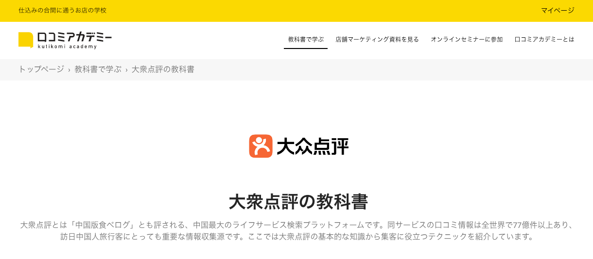 ▲口コミアカデミー「大衆点評の教科書」TOP画面