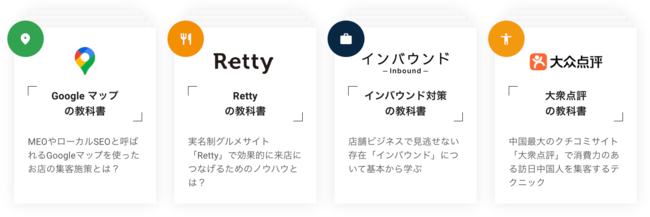 口コミサイトのかしこい運用方法や、お店を取り巻く市場・データ、そして店舗運営に関する様々なノウハウを、時間と場所に縛られず、自分のペースで読んで・聞いて・参加して学ぶことができます。