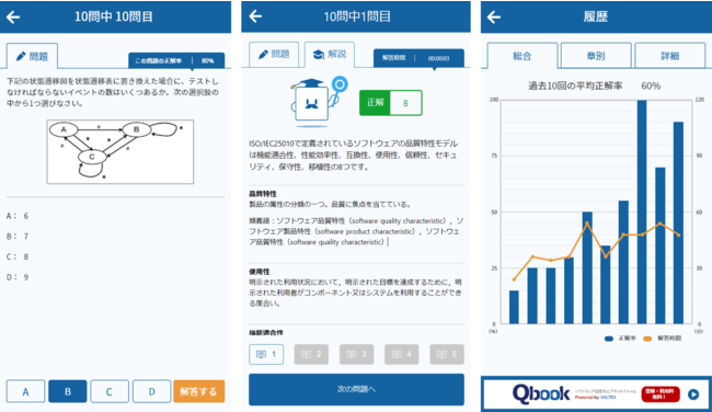 「テス友」は、Qbookに会員登録(無料)することでご利用いただける、テスト技術者資格認定の勉強用アプリです。現在以下の資格試験に対応しています。