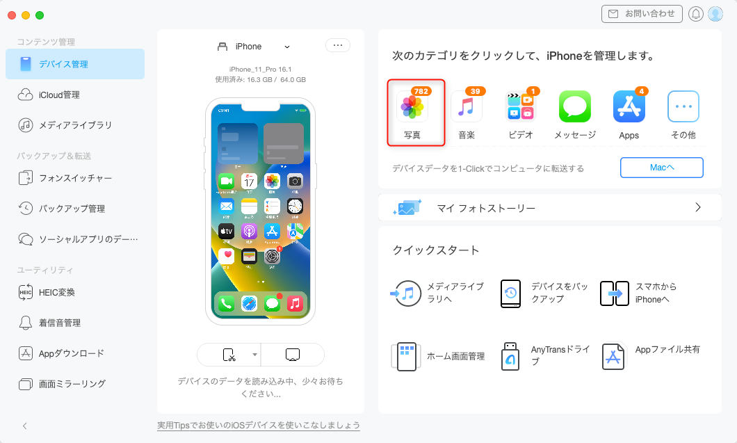 AnyTransであれば、数クリックだけでiPhoneの重複した写真を削除できます。