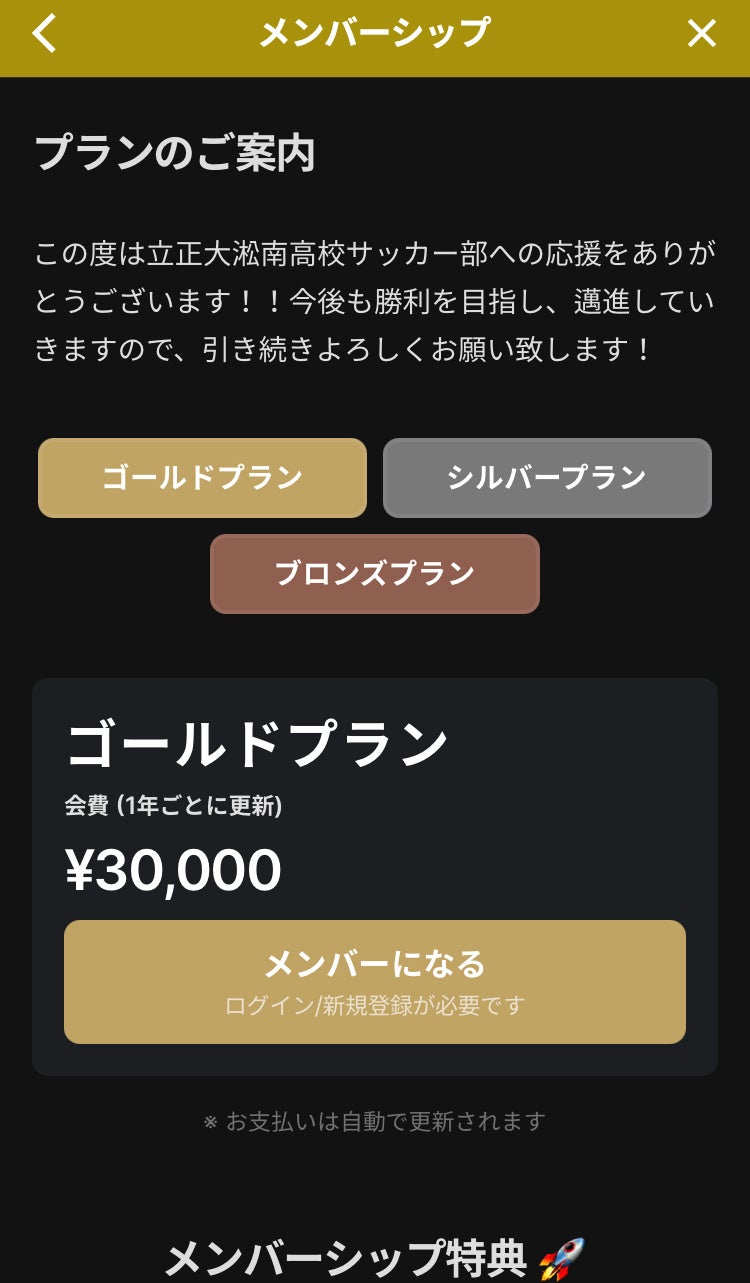 メンバーシップ機能からファンクラブ会員になって頂くと、チームから特別なグッズをお届けします!