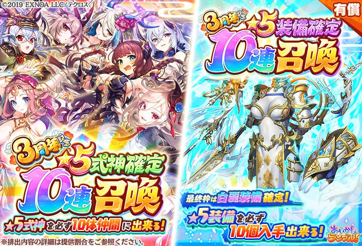 リリース3周年を記念して、★5式神が10体確定の「★5式神確定10連」と、