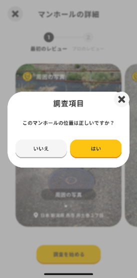 さらに、これまでのレビュー機能(※)に加え、新たに「インスペクト機能」を追加しています。実際にマンホールが投稿されている場所へ行き、マンホールの有無や位置情報の正確さなどについての調査項目に答えることで、投稿された写真が正しいかどうかを検査し必要があれば画像の修正依頼を出すことで、収集したインフラ情報の精度を上げます。インスペクトの実施でも、投稿やレビュー同様に報酬(インセンティヴ)を得ることができます。