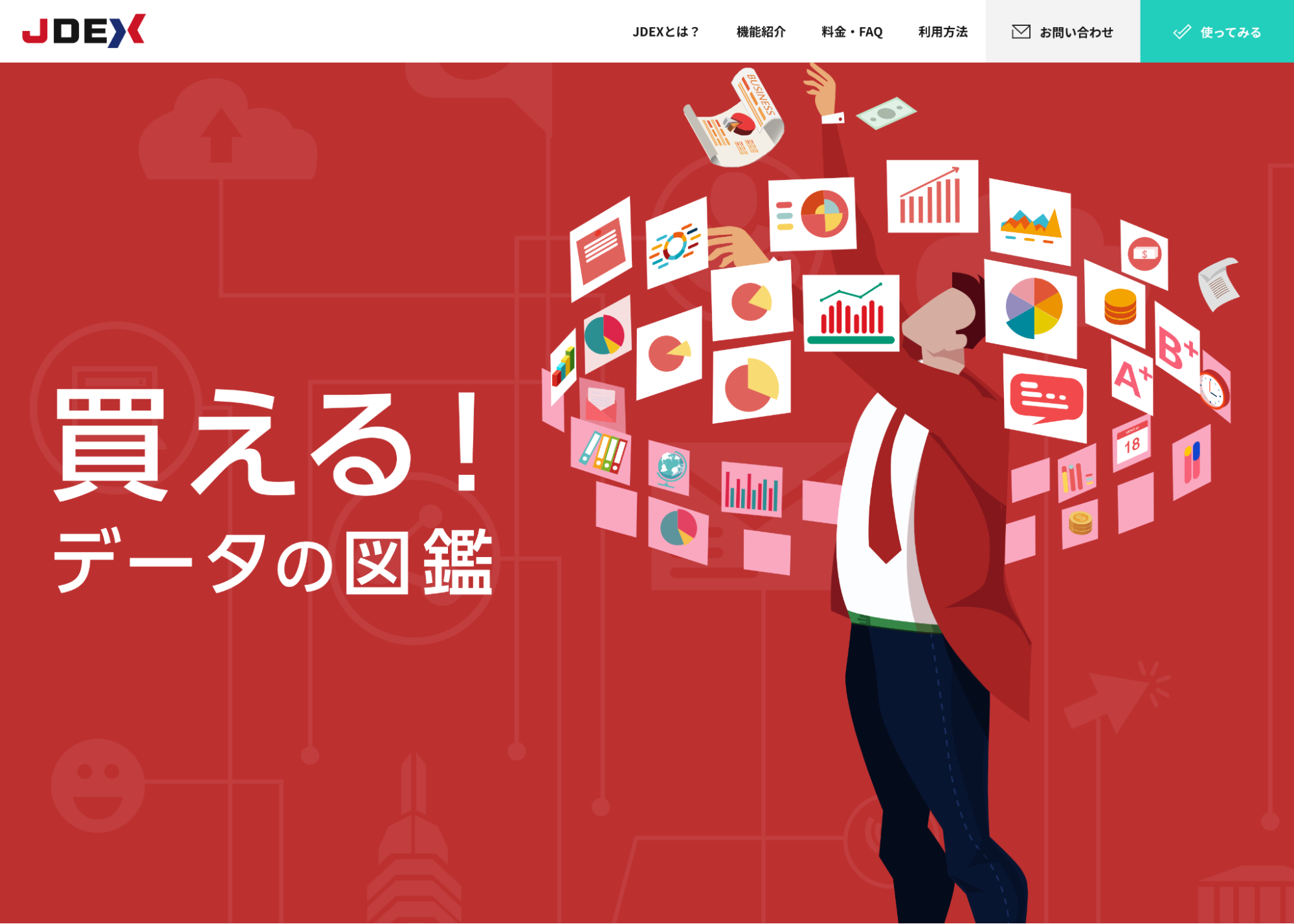 JDEXでは、会員が欲しいデータを探したり、保有するデータを簡単に紹介・出品したりできます。良質なデータを高セキュリティな環境で取引できるサービスとして、ビジネスや研究におけるデータ活用に役立ちます。