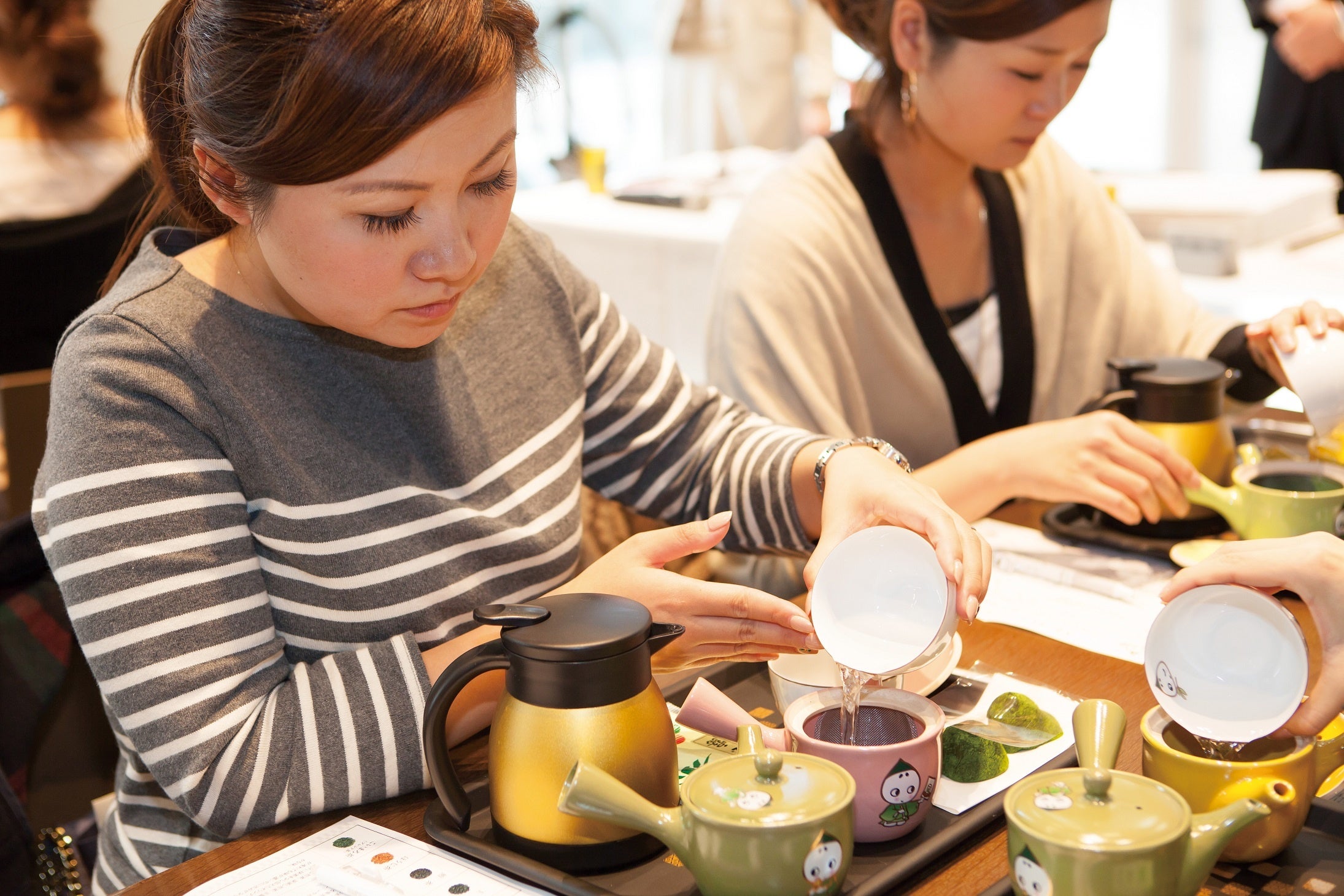 実際に急須をつかってお茶淹れ体験をしていただきます。イベントでは、急須で淹れたお茶のおいしさを体験していただくとともに淹れ方ひとつで何通りもの味に変化するお茶の魅力を存分に味わって下さい。